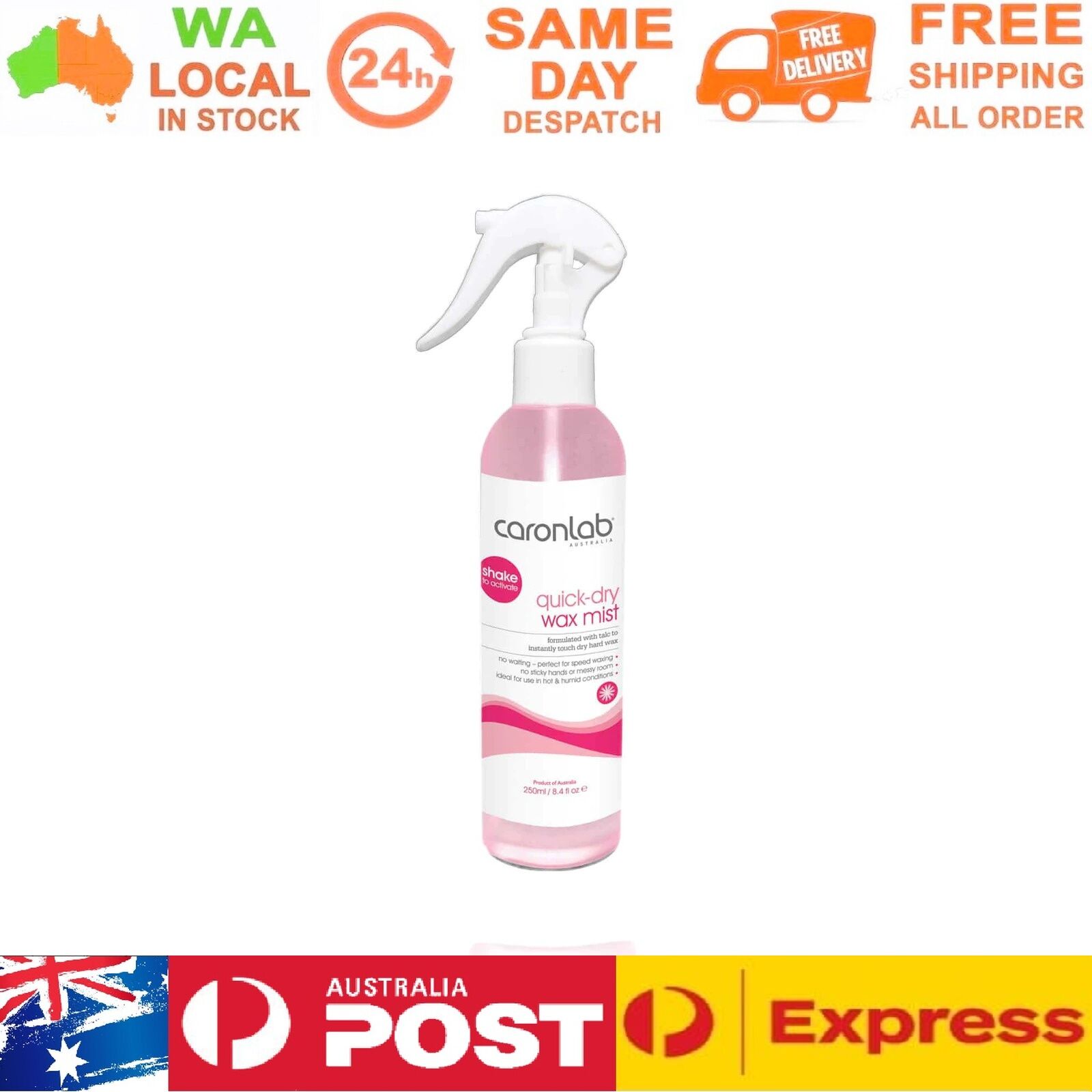 Speed through your waxing treatments, as one quick spray instantly touch dries Hard Wax. Spray on to eliminate the frustration of waiting for hard wax to dry, No sticky hands or gloves mean No Mess! Ideally suited for use in hot and humid conditions. Add a touch of luxury to your waxing treatment as Quick Dry Wax Mist reduces redness and cools the skin,