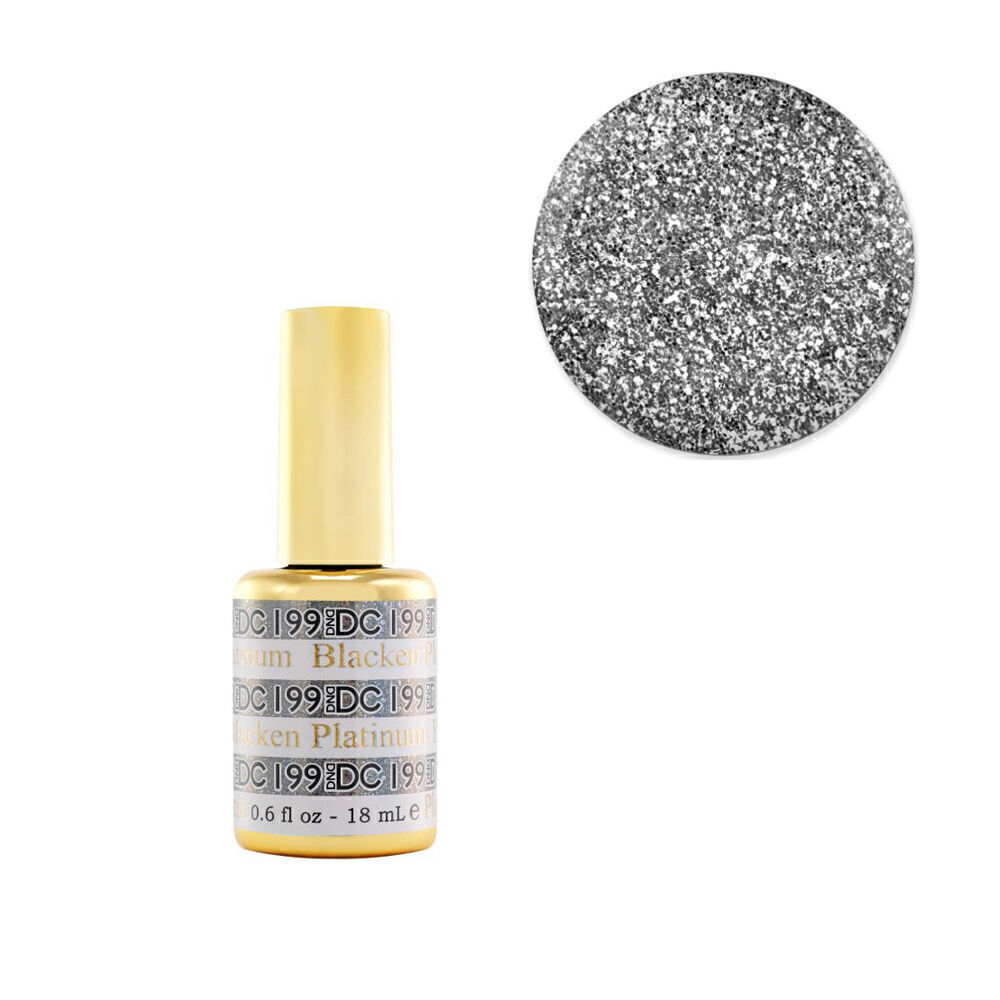 With the new formula, the DND Gel system only requires only gel colour and topcoat, and eliminating the use of a basecoat and bond-aid. It lasts to 21 days. LED and UV compatible. The 2019 Platinum Collection represents DND�s premium gel polish containing 36 brand new glitter shades with superior pigmentation and coverage. Perfect for any occasion with no chipping or peeling! Available in gel polish format only.