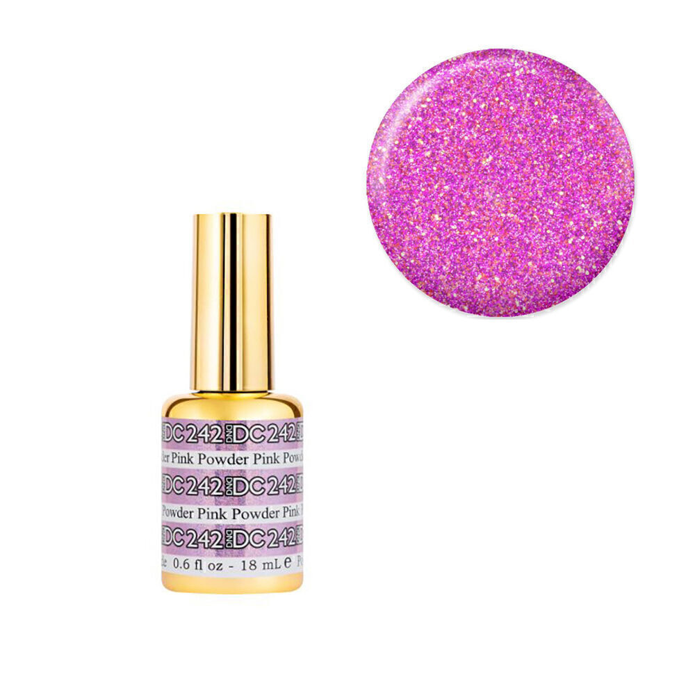 With the new formula, DND gel polishes only requires only gel colour and topcoat, and eliminating the use of a basecoat and bond-aid. It lasts to 21 days. LED and UV compatible. The 2019 DC Mermaid Collection creates that legendary aquatic glimmer and sparkling effect, looking like you have came from under the sea. Similar to the golden shimmer when the sun hits the ocean, your nails will give off the same eye catching, iridescent sparkle! Available in gel polish format only.