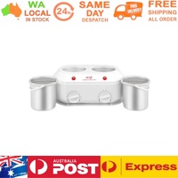 This professional wax heater holds 2 x 1 Litre wax pots. Super compact to save bench space, each pot features separate on/off switches, temperature controls and power indicator lights. Its super compact to help save on bench space, and is suitable for heating all types of wax.