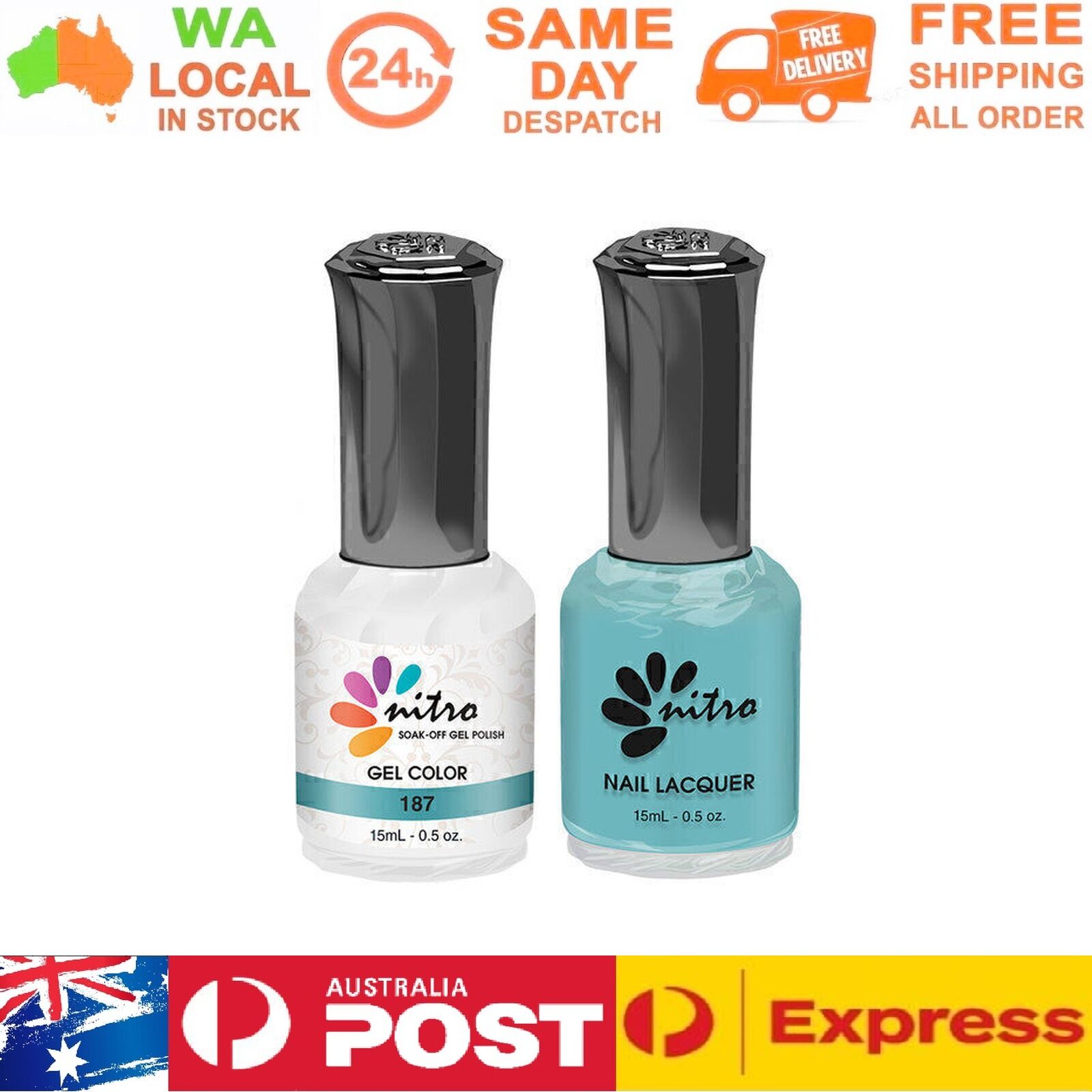 Instruction: Gently remove the shine from the nail bed with 180/240 buffer and clean the oil/dirt from the nail bed. Apply 1st thin layer of Nitro gel colour. Be sure to seal the free edge for each step. Cure under UV Lamp for 2 mins or LED for 60 seconds Apply 2nd layer Nitro gel colour. Cure under UV Lamp or LED lamp with the same time as step 3. Apply Nitro Top Gel. Cure under UV Lamp or LED with the same time as step 3. Use a lint-free pad/nail wipes with nail cleanser to remove the tacky residue on the nail. Packing Included: 1 x Gel Color 15ml 1 x Matching Nail Lacquer 15ml