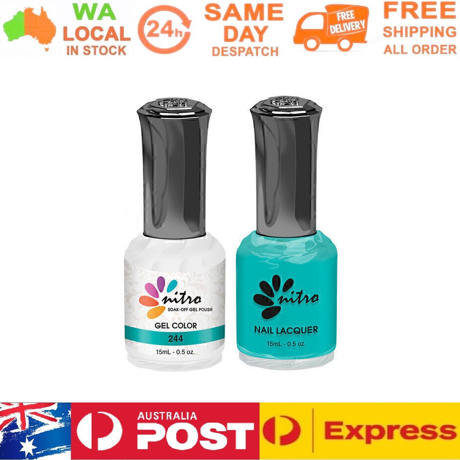 Instruction: Gently remove the shine from the nail bed with 180/240 buffer and clean the oil/dirt from the nail bed. Apply 1st thin layer of Nitro gel colour. Be sure to seal the free edge for each step. Cure under UV Lamp for 2 mins or LED for 60 seconds Apply 2nd layer Nitro gel colour. Cure under UV Lamp or LED lamp with the same time as step 3. Apply Nitro Top Gel. Cure under UV Lamp or LED with the same time as step 3. Use a lint-free pad/nail wipes with nail cleanser to remove the tacky residue on the nail. Packing Included: 1 x Gel Color 15ml 1 x Matching Nail Lacquer 15ml