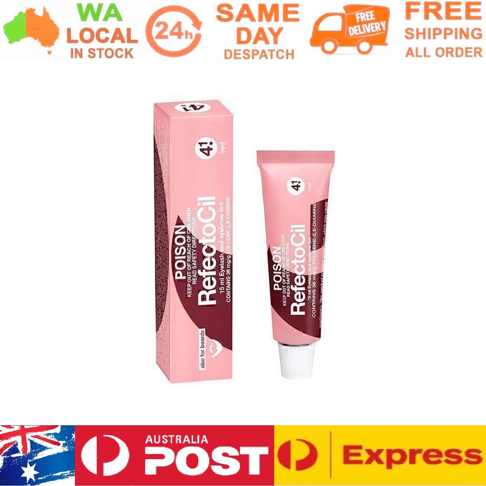 Tint eyebrows and lashes to an intense red using Refectocil's Tint 4.1 Red, designed for clients with blonde hair for an intense red or dark brown hair for a red shimmer. This smudge and waterproof formula lasts up to 6 weeks. Mixable with Refectocil tints to create warm colour accents, can be mised with a deep blue to create a dark violet shade.